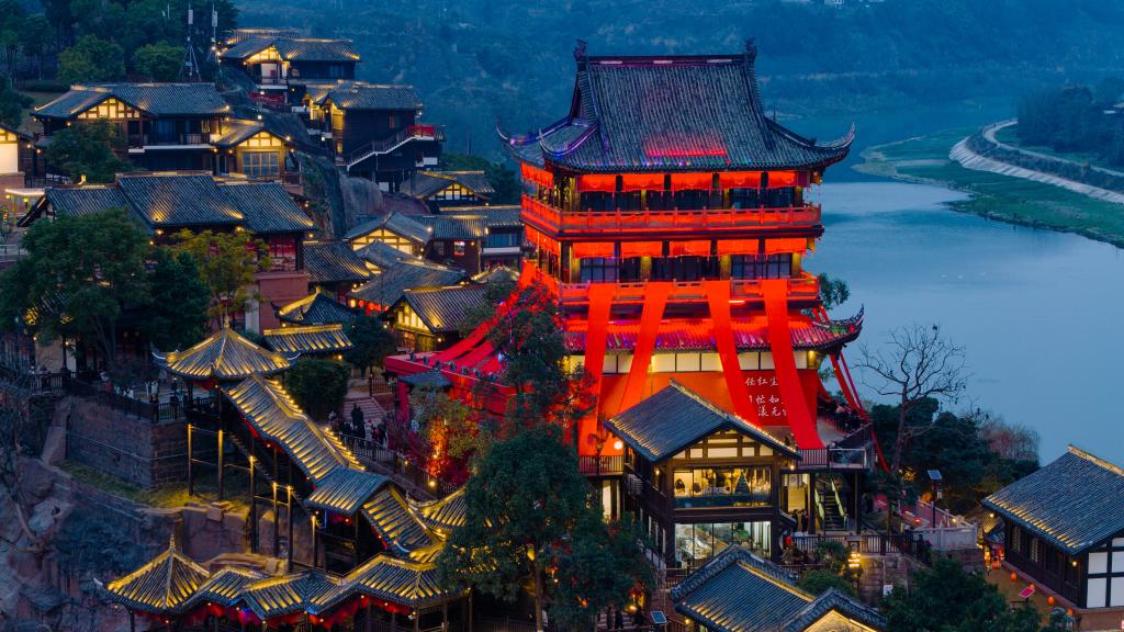 成都影旅交融园区——金堂县五凤溪·龙吟天城。新华社发