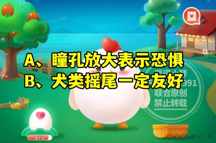 蚂蚁庄园素养:判断流浪动物是否友好时,以下哪种信号是额外的?A、瞳孔放大示意猬缩 B、犬类摇尾一定友好;冬季闭塞门窗时,哪种室内收敛物浓度更容易超标?A、花粉 B、二氧化碳;这些都是蚂蚁庄园素养的题目。
