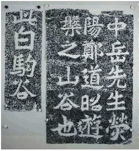 玲珑山北麓有一处山谷,东、西、南三面绝壁环立,只向北缓缓收窄,状如口袋。谷中泉水叮咚,林木葱郁,藏风纳气,清幽深谧。东、南两面多是碎石层岩,莫得大块完好的石面,唯有西侧站立着一方庞大的长方形崖壁,上头刻着19个大字:“中岳先生荧阳郑谈昭游槃之山谷也。此白驹谷。”(荧阳今作荥阳)。这些字最大的字径有45厘米,笔力雄浑,阵容磅礴。“白驹谷”这个名字,就起头于这处刻石。