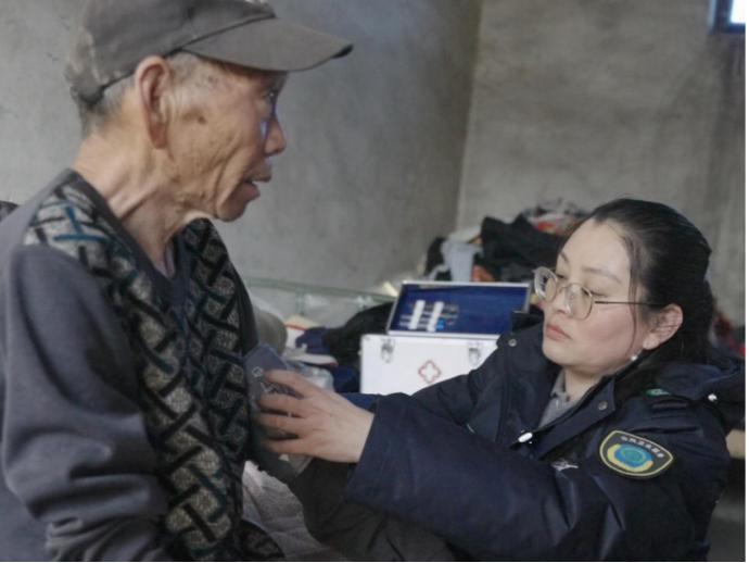 把握春节,村里年味渐浓。付文娜背着药箱出了门。她要去的头一户,是张周爷家。
