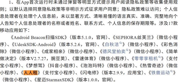国度狡计机病毒济急处治中心曾于2025年8月、2026年3月两次通报“东说念主东说念主租”APP及支付宝小设施存在违章问题,波及诡秘策略未明坚信息辘集范围、未提供陋劣的撤退欢喜形状、以默许接纳欢喜诡秘策略等非昭示形状征求用户欢喜、违章辘集个东说念主信息等。
