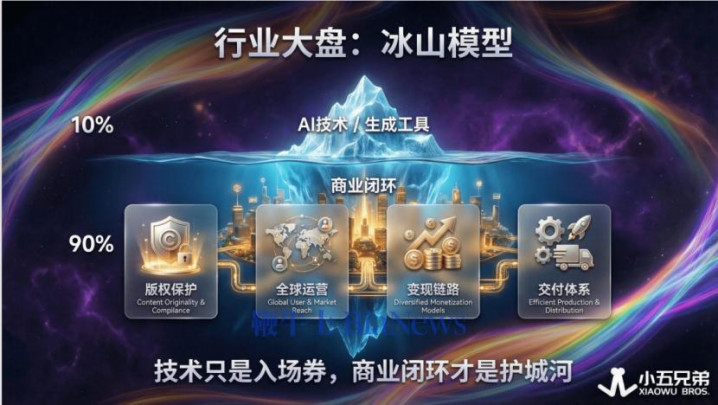 技艺方面,今天也有许多大佬共享,咫尺大模子正加快迭代中,这是一个很好的商机。然而,从小五兄弟来说,咱们不是作念器具,其实额外于是刊行、出海、创收的企业。会看到当群众比拟聚焦在AI技艺、器具时,开云app其实还有一个板块90%的东说念主没谨防,便是咱们在作念的事情。技艺仅仅一个入场券,生意闭环才是群众的护城河,群众使用那么好的模子制作的本色,最热切的是出海赚好意思金。